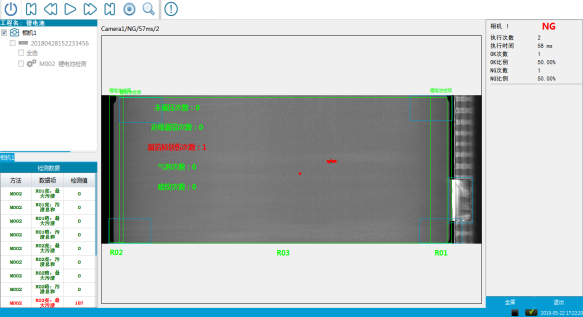 在線式檢測系統一共四個工位,前端物料正反面(工位1和工位2)檢測兩個,后端兩個超聲波焊接后各一個(工位3和工位4)。