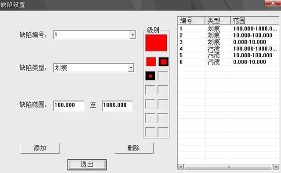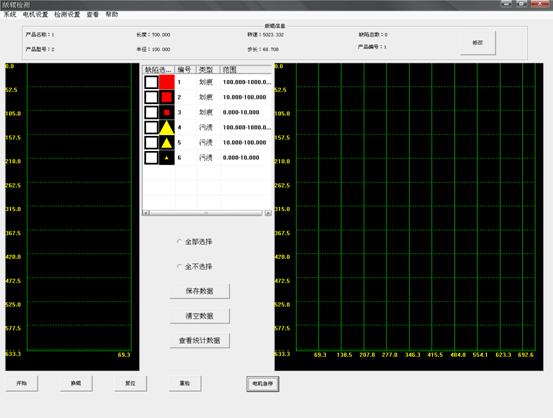 當圖像定位好后,根據(jù)檢測區(qū)域內(nèi)極片表面是否有褶皺、缺口、開裂、掉料、粘料、氣泡、漏箔等缺陷超過設置的灰度差值提取表面的缺陷,并提示缺陷位置及顯示缺陷大小。輸出相應檢測信號。