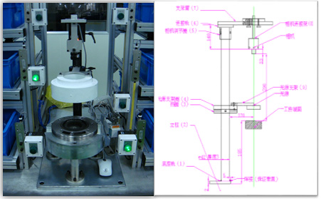 “剎車片分揀視覺系統(tǒng)”,本系統(tǒng)采用先進(jìn)的圖像視覺檢測(cè)技術(shù),實(shí)現(xiàn)對(duì)運(yùn)動(dòng)中的剎車片進(jìn)行實(shí)時(shí)分揀。系統(tǒng)配備一臺(tái)高速工業(yè)相機(jī),高速工業(yè)相機(jī)在不同的工位采集到剎車片圖像,并將圖像數(shù)據(jù)傳送到圖像處理系統(tǒng),圖像處理系統(tǒng)對(duì)每幅圖像進(jìn)行預(yù)處理、匹配定位、特征區(qū)域自動(dòng)搜尋、相關(guān)尺寸測(cè)量等運(yùn)算,并與標(biāo)準(zhǔn)模板圖像或設(shè)定的相關(guān)參數(shù)進(jìn)行比較,如果發(fā)現(xiàn)不一致的區(qū)域并且超過設(shè)定的參數(shù)范圍,則輸出報(bào)警信號(hào)。