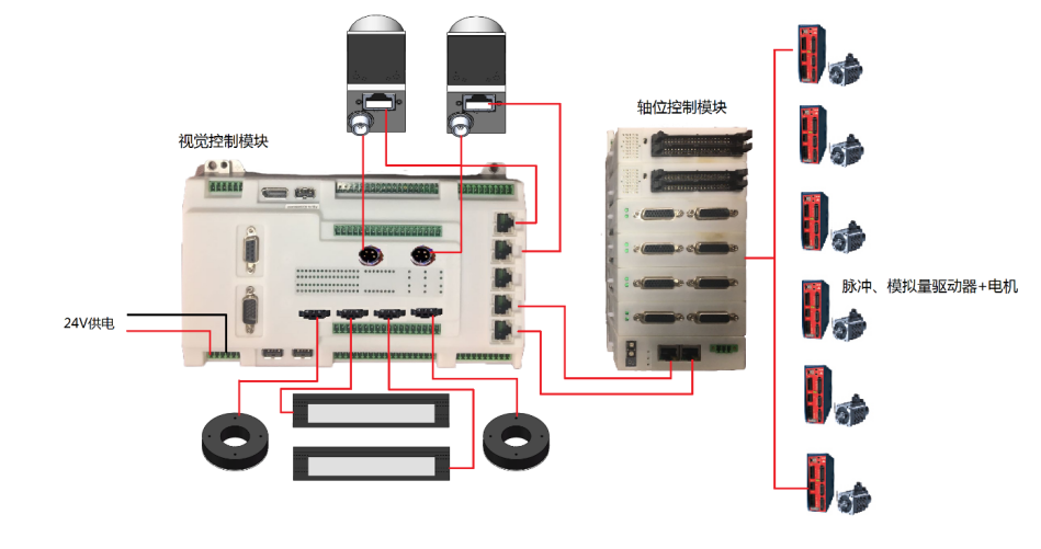 | 產(chǎn)品主要功能,運(yùn)動(dòng)控制模塊,相機(jī)供電觸發(fā)控制模塊,光源控制模塊,圖像處理系統(tǒng),輸入輸出IO信號模塊。 |